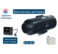 Отопитель воздушный Спутник 3Д-12В (3 квт) с баком 7.5л / ЭЛЕКТРОННЫЙ ПУЛЬТ ТАЙМЕР